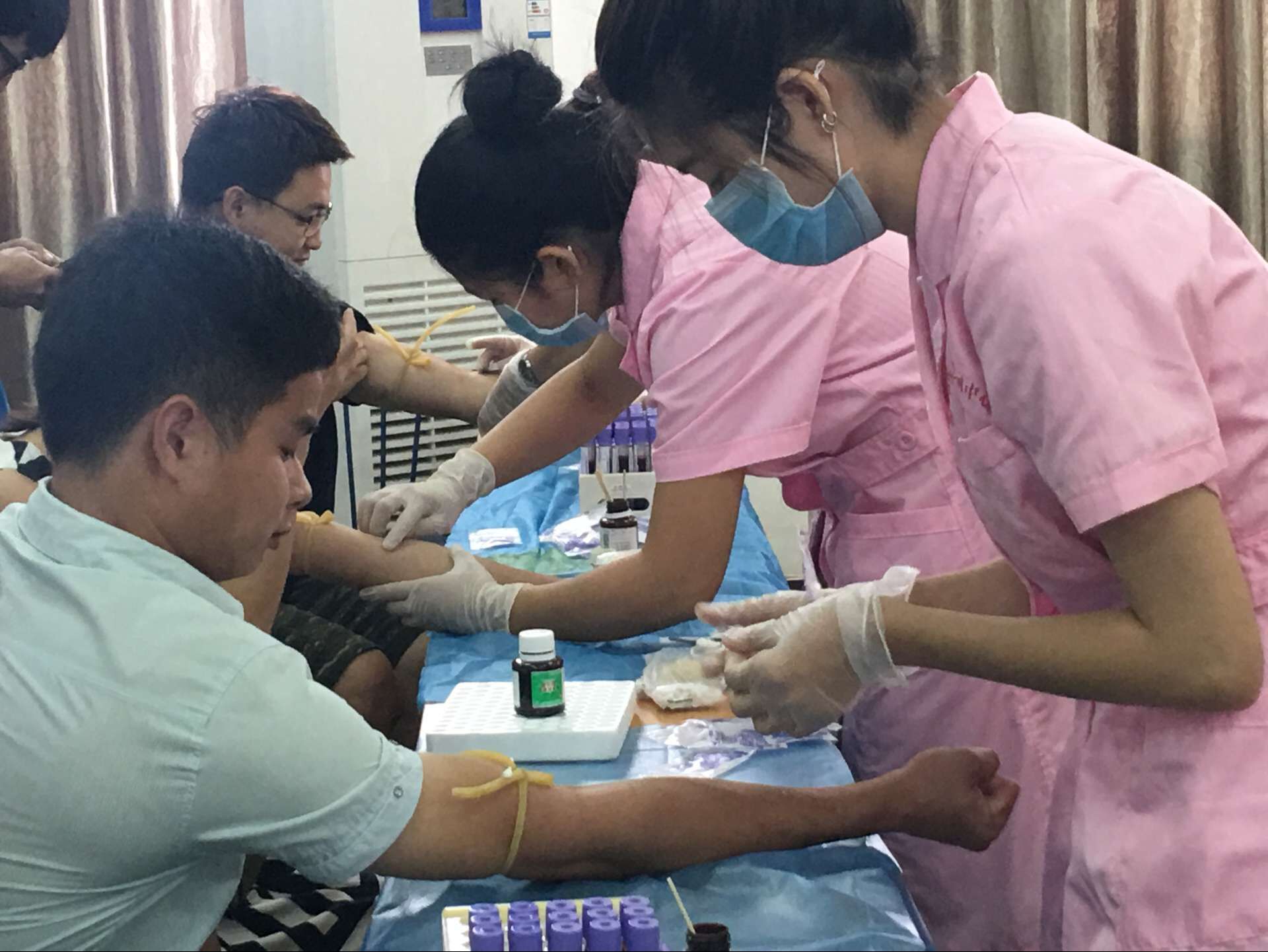 5月10日讯(工程技术学院 李京京报道)为了减少、禁止艾滋病的滋生和传播,我院请来了海南医学院的医生护士于5月10日下午2:30分,在二栋教学楼408教室开展了血液检查活动。由辅导员肖老师和团学工作人员维持现场秩序。