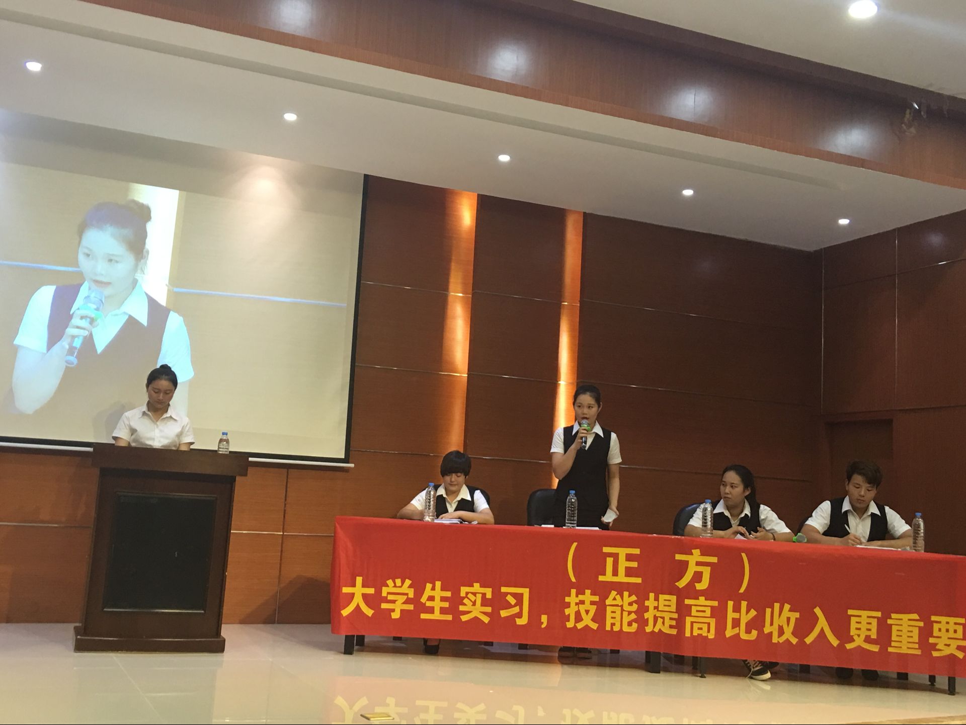 5月17日讯(工程技术学院 岳将红报道) 为了丰富同学们的课余生活,提升文学修养,调动同学们的积极性,5月16日晚学校于学术交流中心举行了第九届经贸大学生辩论赛预赛。其中预赛参赛的学院一共有六个,两两一组分正反方比赛,比赛共三场。第三场比赛中,工程技术学院作为正方迎战反方国际教育学院代表队。本场比赛的辩题为,大学生实习技能提高与收入哪个更重要。