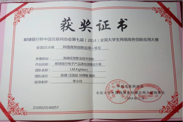 去年中国邮政储蓄银行海口市分行给予了我院参赛学生极大的支持,不仅由企业教官多次入校为学生指导比赛事宜,还从经济上大力赞助了参赛师生的交通和食宿费用。我院信息技术系学生分别获得了国家级高职组团队一等奖和二等奖,成绩优异,在本次入校巡讲现场,中国邮政储蓄银行海口市分行给本次大赛中表现优秀的师生颁发了5000块钱的奖金,并表示将继续大力支持本届的网商大赛。