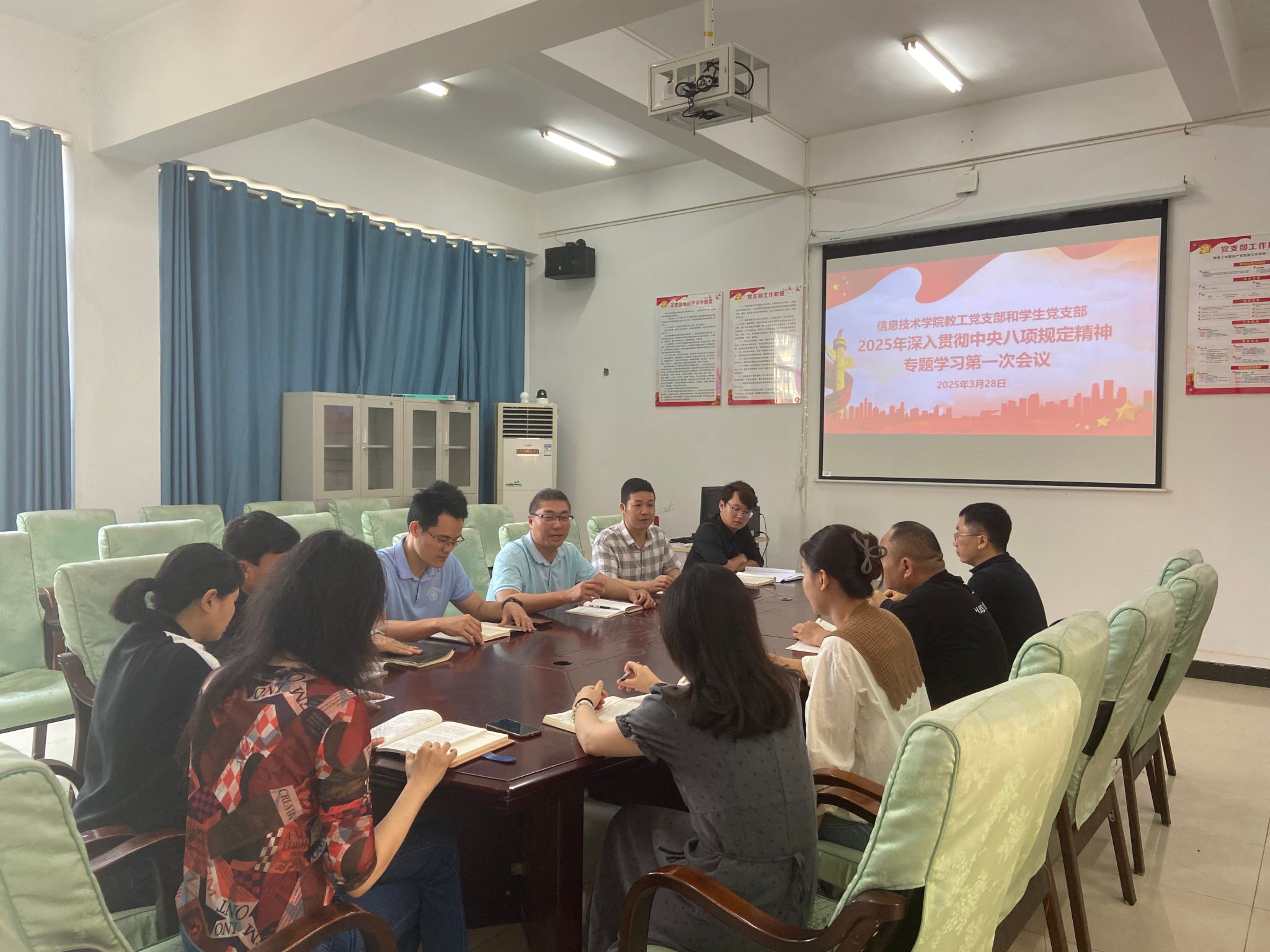 2025年3月28日上午,best365官方网站登录入口教工党支部和学生党支部在4-213联合召开2025年度深入贯彻中央八项规定精神专题学习第一次会议,会议由教工党支部书记康东主持。