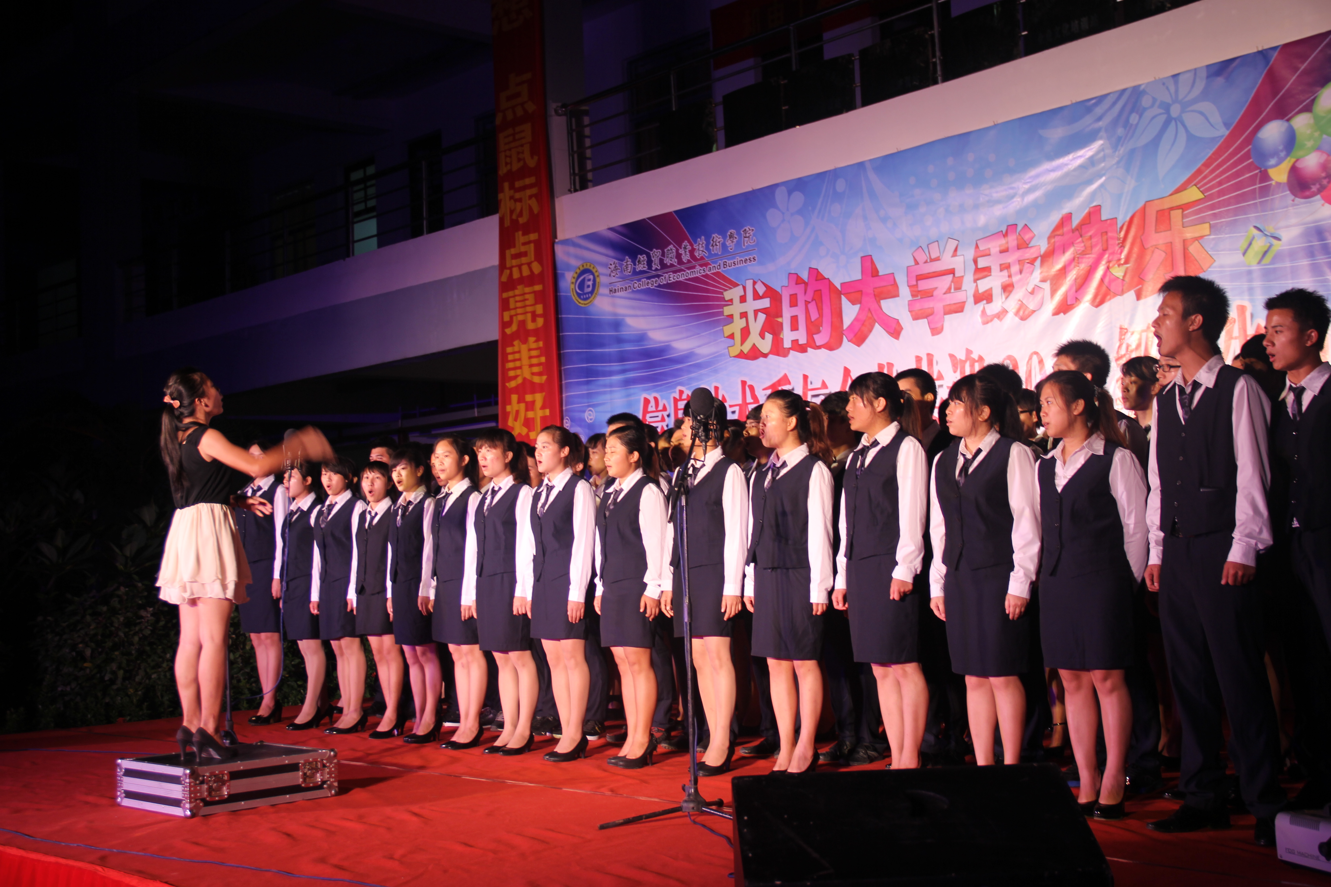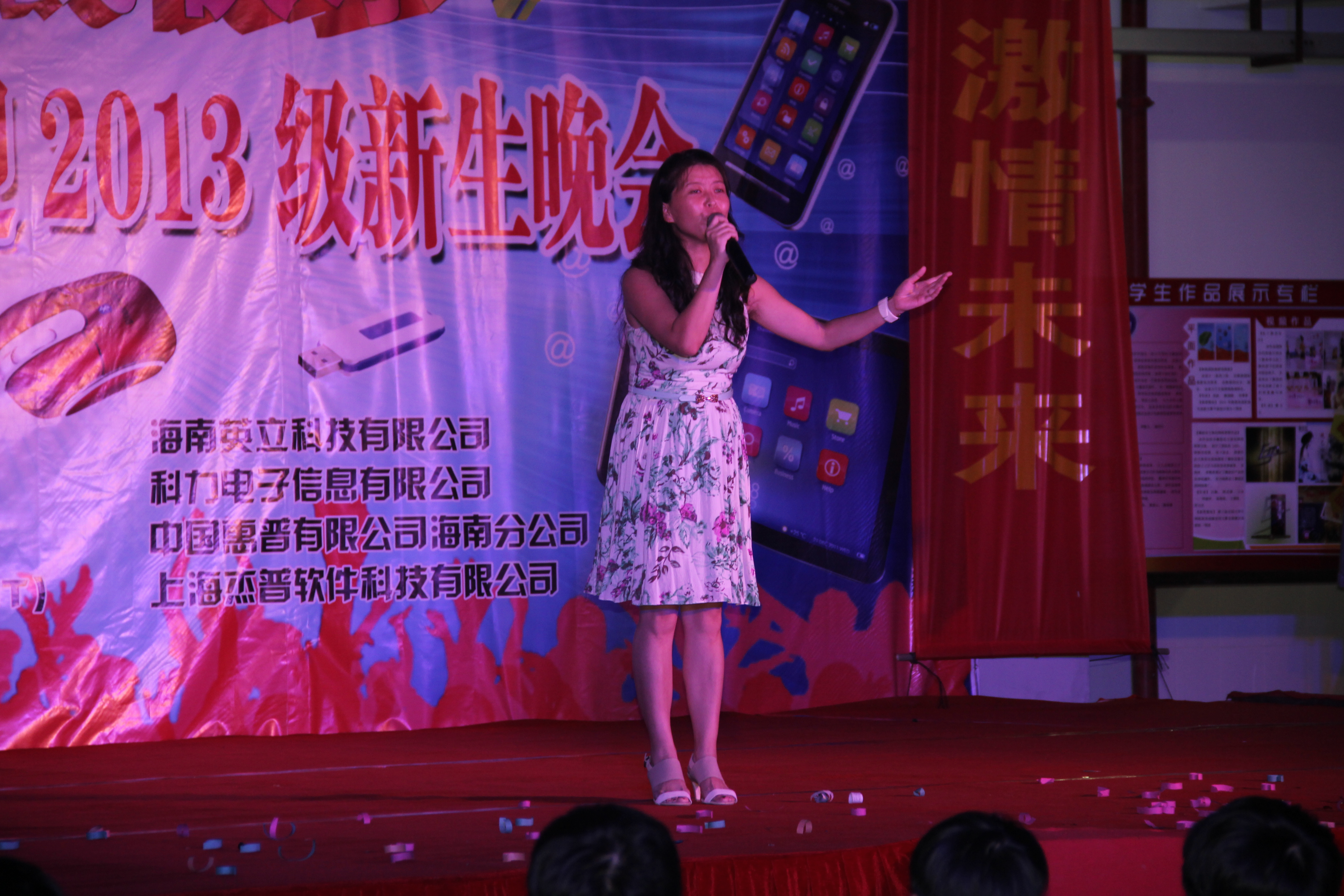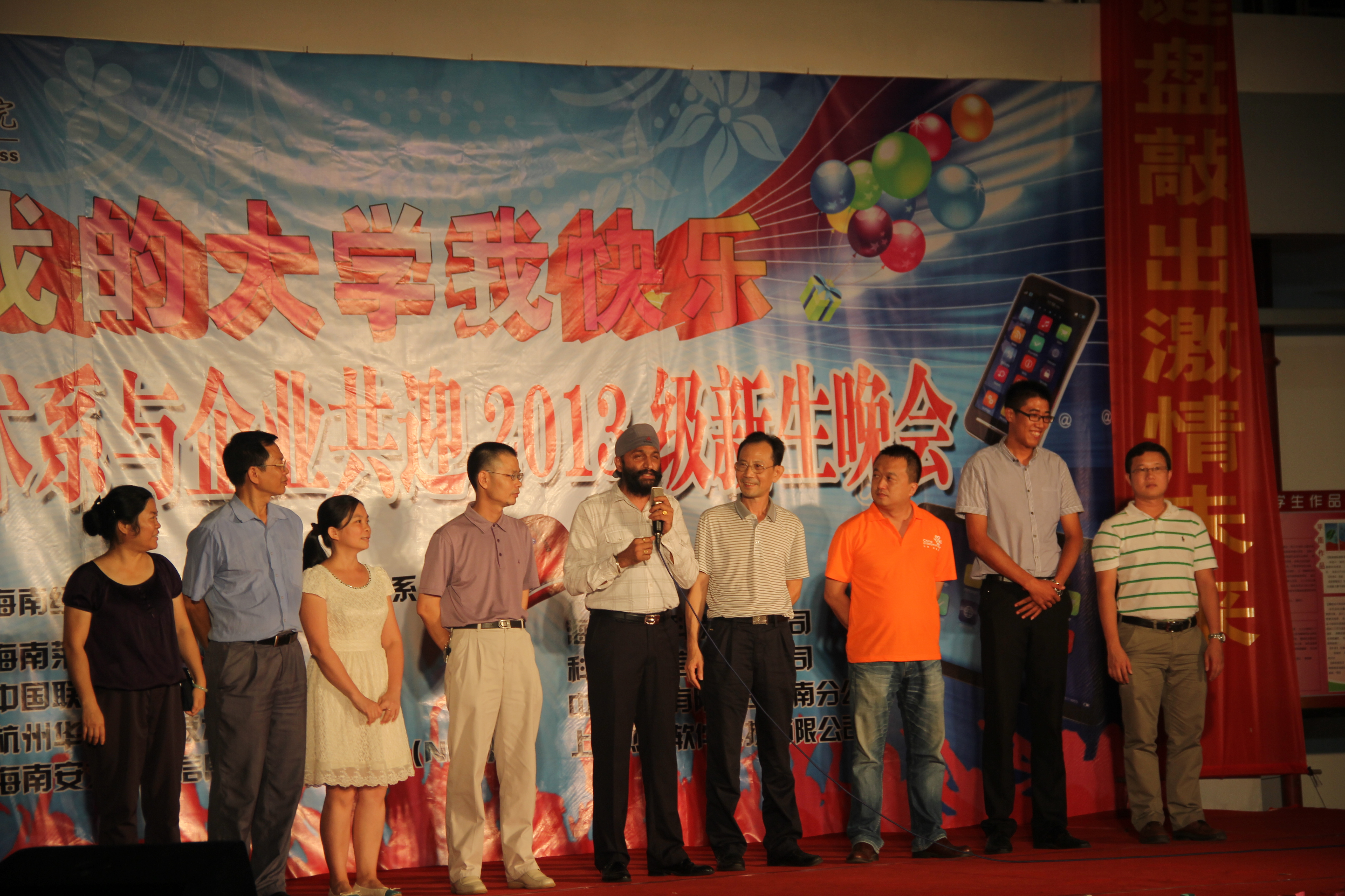 (信息技术系宣教部报道)9月27日晚8点整,信息技术系在二栋教学楼楼下以“我的大学我快乐”为主题举办信息技术系与企业共迎2013级新生晚会,特约嘉宾有:我系党总支书记陈继敏,系主任李丽蓉,系副主任王凡帆、计算机网络技术专业负责人王岩、电子商务专业负责人单继周、计算机多媒体技术专业负责人李兵、学生党支部书记陈亚芳、辅导员陈青云、龙腾老师,另外还有我系各个专业的老师出席晚会现场。出席本次迎新晚会的企业有中国联通海南分公司、杭州华三科技有限公司、海南安艾艾迪有限公司、海南莱福科技公司、海南英立科技有限公司。