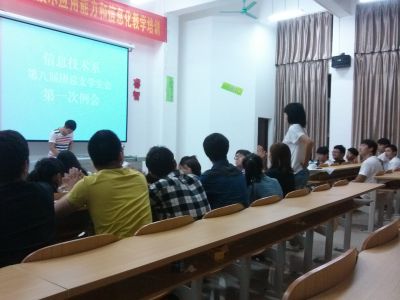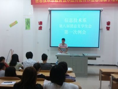 本系10月18日讯(团总支秘书长 钟超报道)17日晚7点30分,在二栋五楼613多媒体教室召开信息技术系第八届团总支学生会的第一次工作例会。会议首先由学生会主席韩笑同学作了第七届团总支学生会工作总结和第八届团总支学生会的工作部署,同时宣读了2013年团总支学生会各部门成员聘用名单。