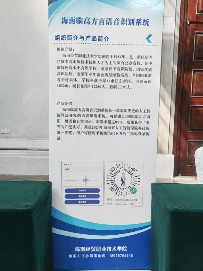 2025年6月8日上午,海南省企业科协联合会成立大会在海口鲁能希尔顿酒店隆重召开,中国科协企业创新服务中心及海南省科协相关领导应邀出席大会。大会同期举办了科技创新成果展,集中展示了来自省内企业和单位的20余项前沿科技成果。我院王忠教授团队自主研发的“海南临高方言语音识别系统”成为焦点展品,吸引了与会领导及企业代表的广泛关注。