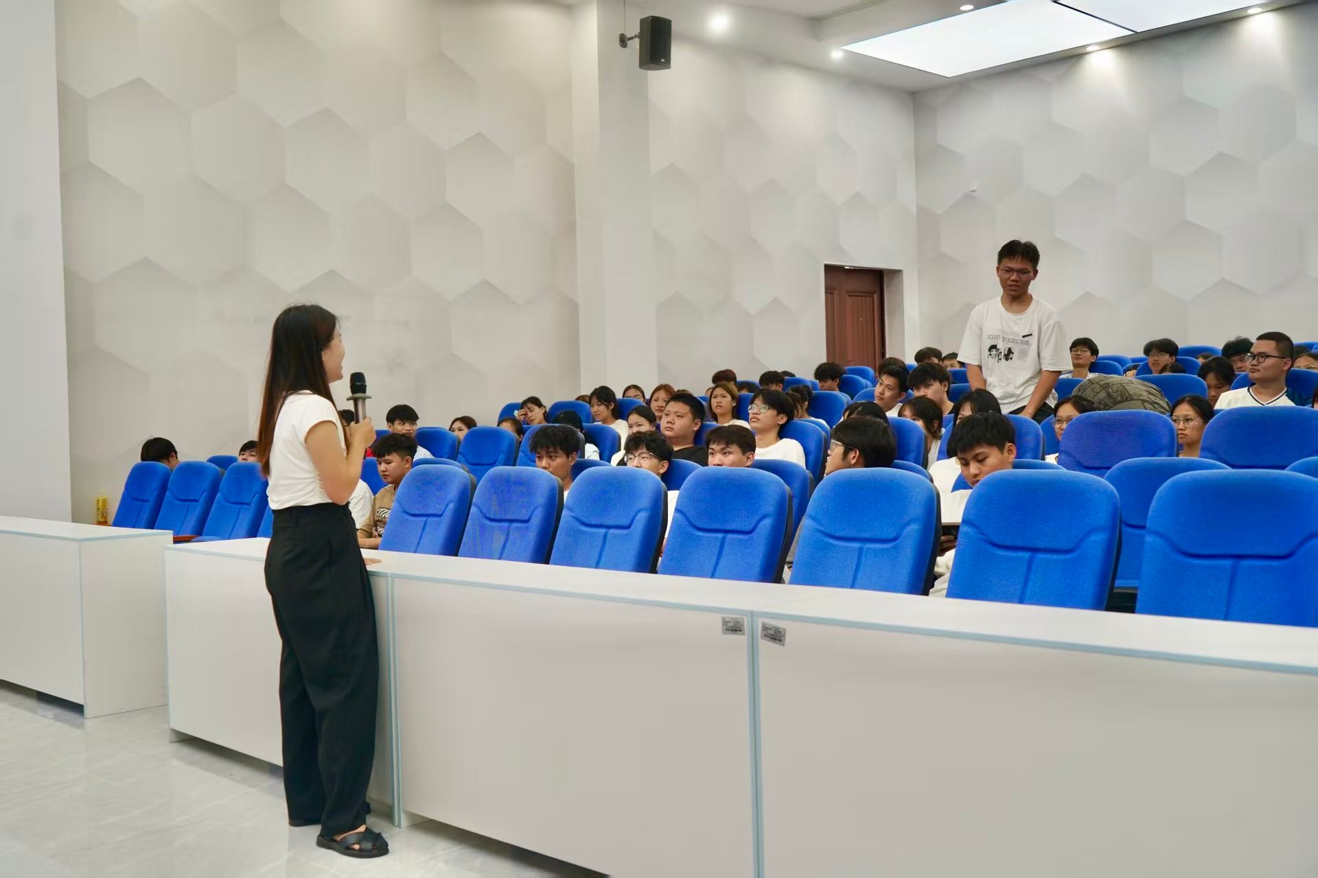 讲座最后,两位老师共同为新生解答疑问,针对“军训请假后是否需补训”“资助申请材料如何提交”等问题逐一回应。新生们纷纷表示,此次讲座内容实用、讲解透彻,不仅厘清了校园管理的关键要求,也消除了对资助政策的困惑,为开启大学生活奠定了坚实基础。