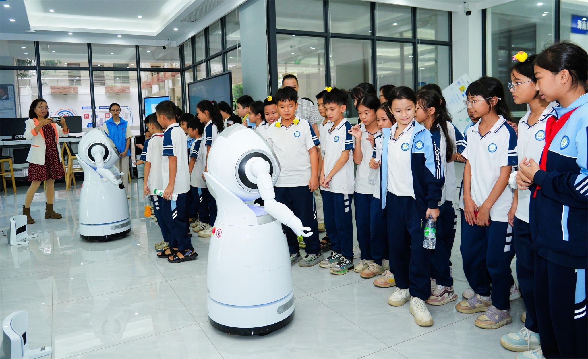 2025年11月1日,文昌市抱罗中心小学、泰山小学、昌江小学440多名充满好奇心与活力的“小访客”,走进人工智能教育海南省职业体验中心,近距离感受和体验人工智能职业教育,在沉浸式体验中感受科技力量,萌发职业认知。