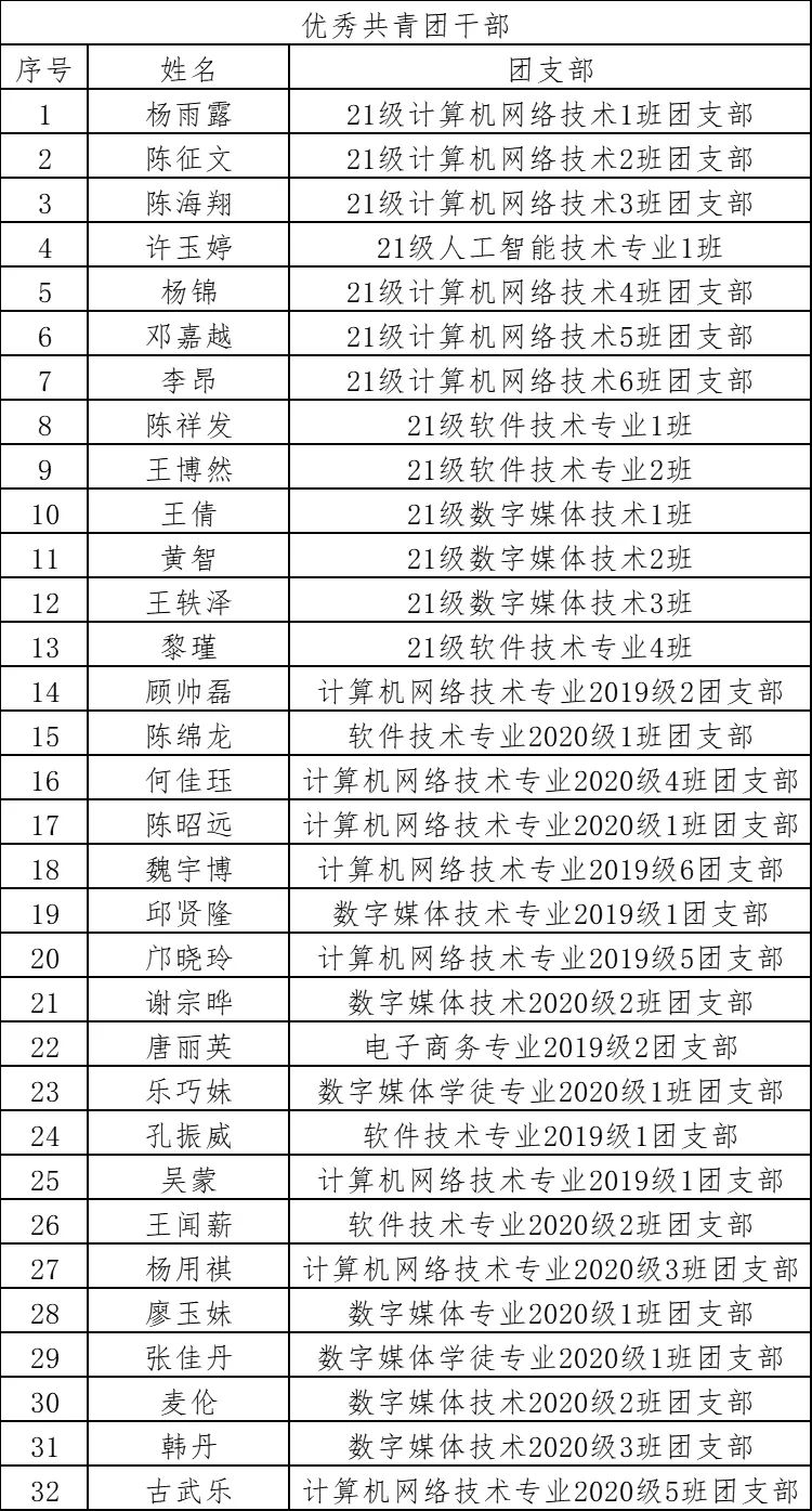 本着公平、公正、公开的原则,经学生个人申请、辅导员审核、院团总支考察、院党总支同意,现将我院2022年“五四评优”人员名单进行公示: