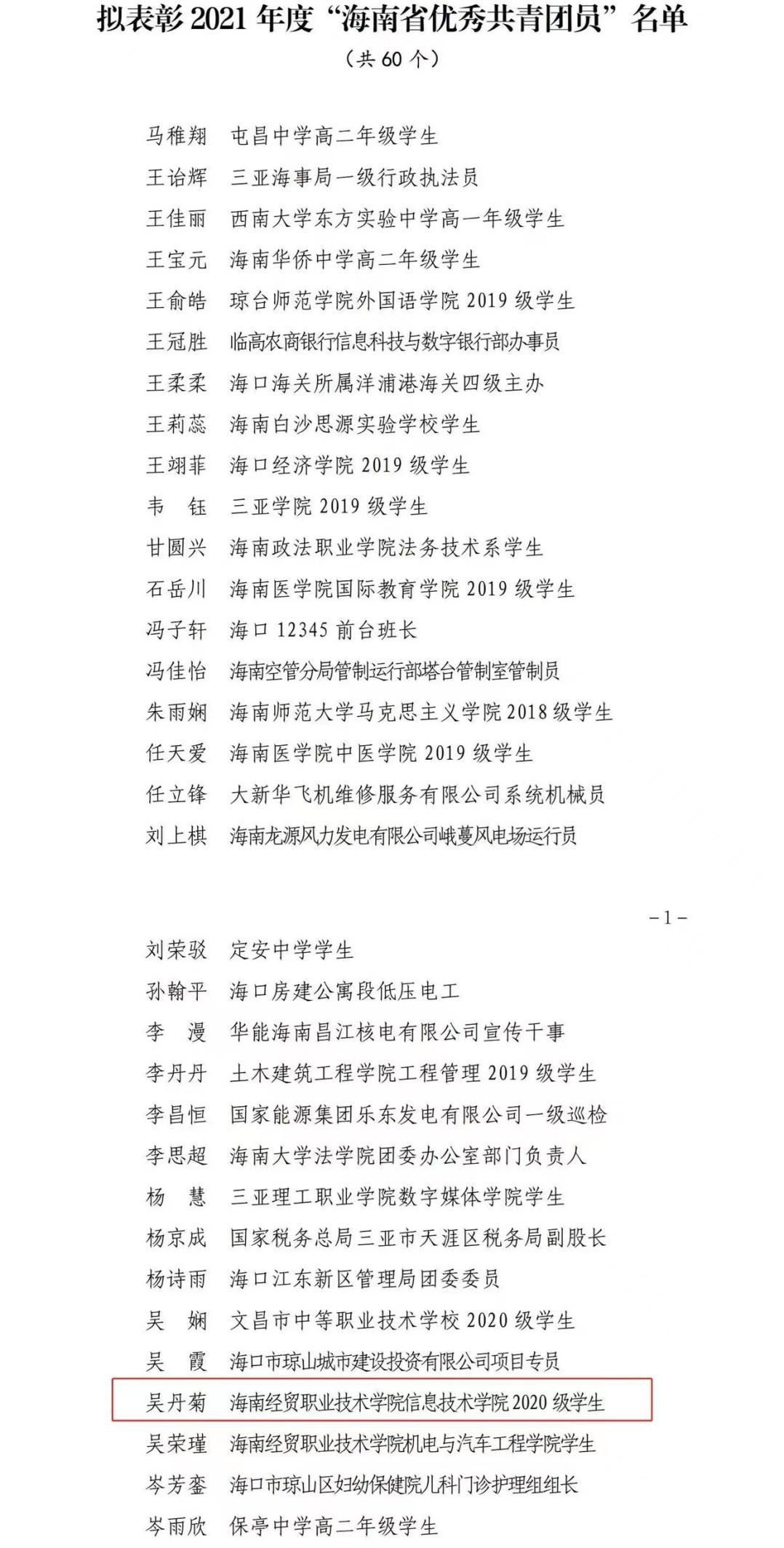 千锤百炼才能造就英才,珍惜韶华方能不负青春。2022年是中国共青团成立100周年,在五四精神指引和共青团组织引领下,我院吴丹菊荣获“海南省优秀共青团员”称号。让我们一起去认识这位优秀的团员吧!