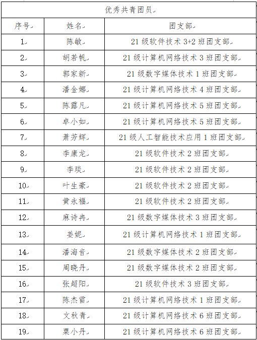 本着公平、公正、公开的原则,经学生个人申请、辅导员审核、院团总支考察、院党总支同意,现将我院2022年度“五四评优”人员名单进行公示: